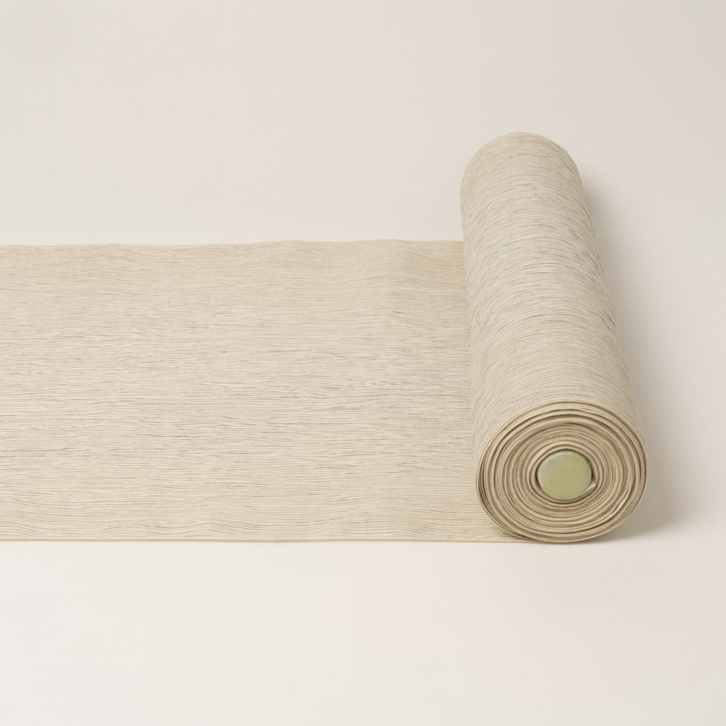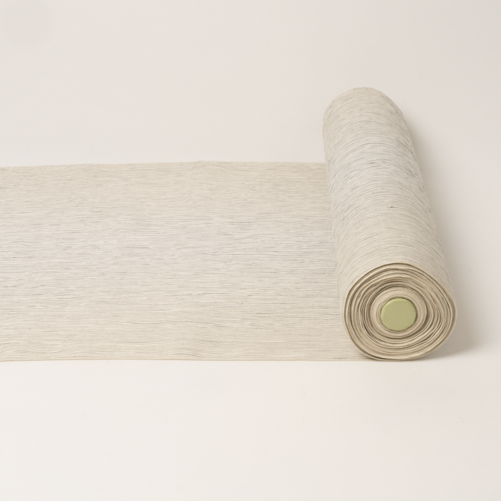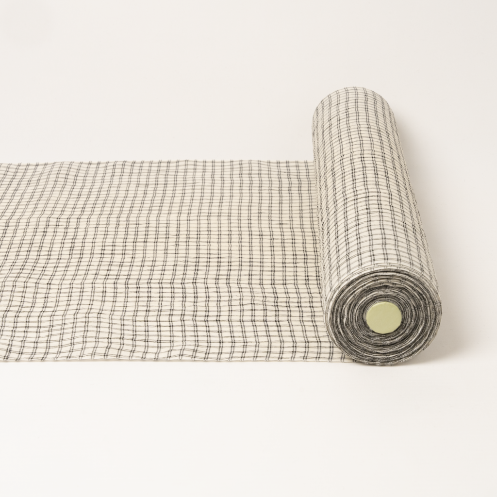 「0.01」は、三日月の明るさが0.01ルクスだと言うことに着想したテキスタイルです。「目には見えない、写真にも映らない、けれどそこには確かにあって、理由は分らないけれど、誰かの心を動かす小さな要素になっている」そんな仕事を目指した布です。