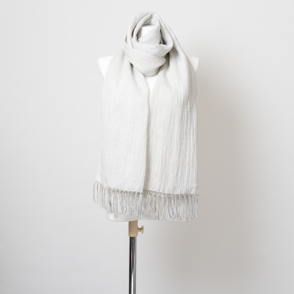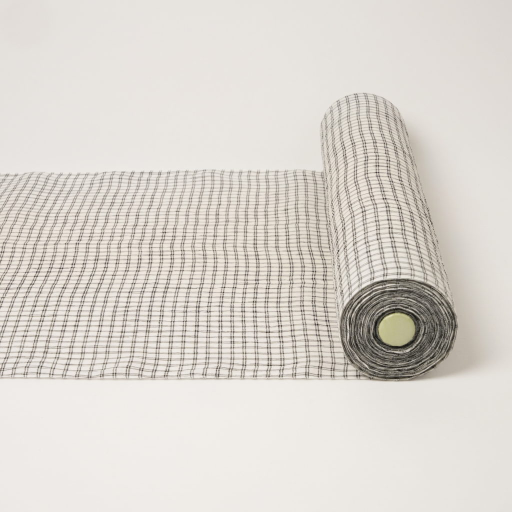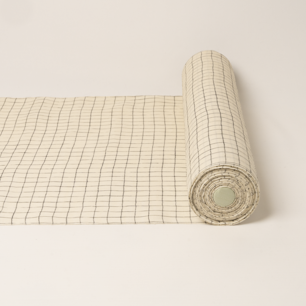 「0.01」は、三日月の明るさが0.01ルクスだと言うことに着想したテキスタイルです。「目には見えない、写真にも映らない、けれどそこには確かにあって、理由は分らないけれど、誰かの心を動かす小さな要素になっている」そんな仕事を目指した布です。